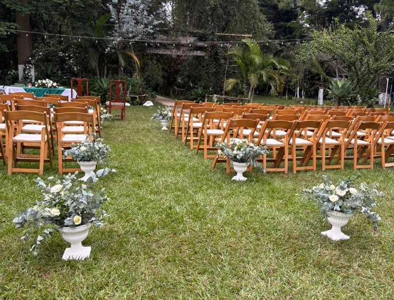 En El Jardín del Bosque, cada evento se vive rodeado de naturaleza, con espacios amplios y un ambiente que invita a la comodidad y la elegancia.